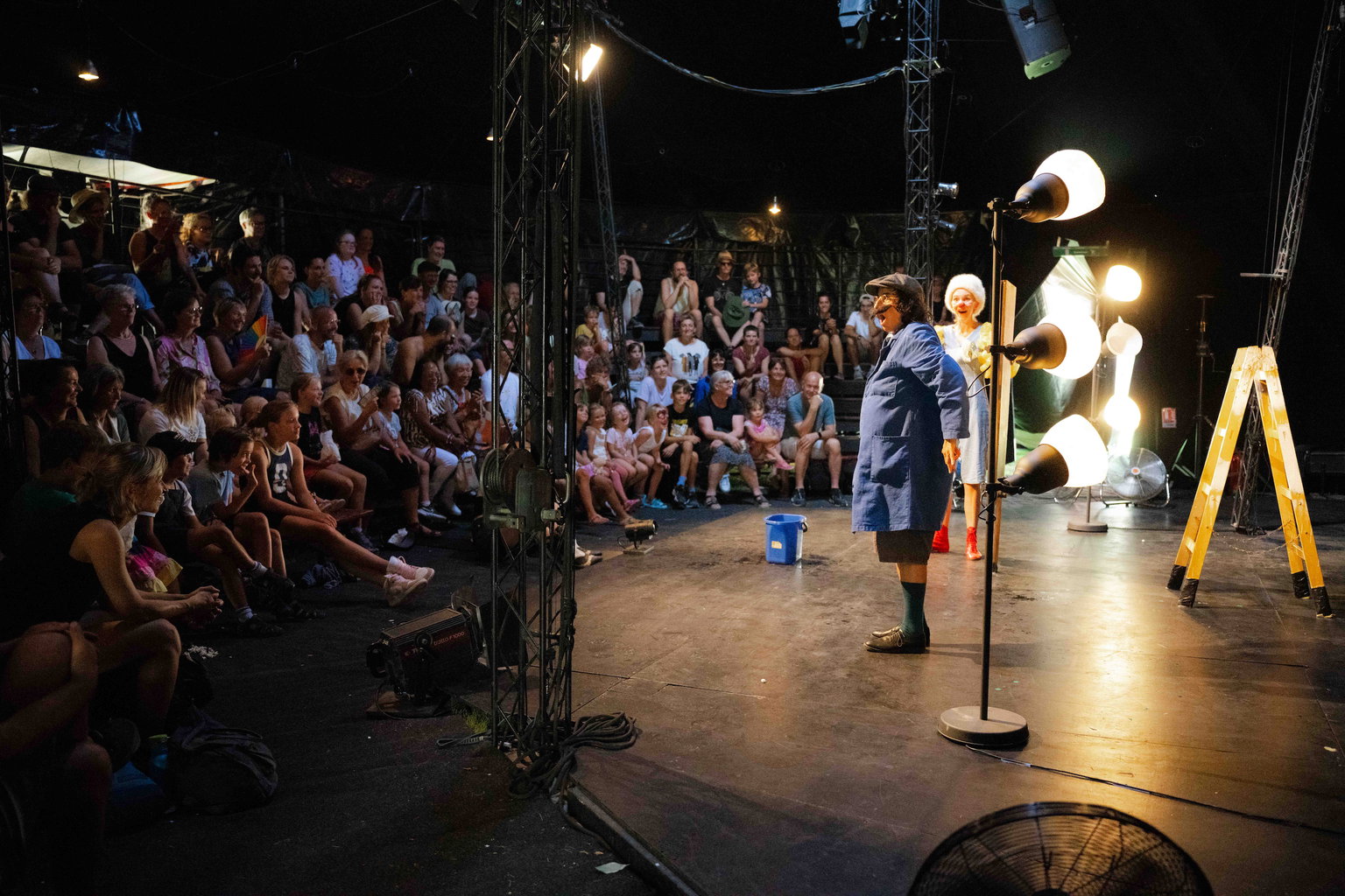 Im Theater wird es ruhig, und die nächste Vorstellung kann beginnen. Alle sitzen auf ihren Plätzen. Der Hausmeister ordnet die letzten Dinge. Passt! Alles ist am richtigen Ort. So mag er es. Da kommt Suschi. Zu spät und freudig. Und schwer einzuordnen. Die Welt des Hausmeisters wird auf den Kopf gestellt. Nichts passt mehr, es geht drunter und drüber. Schlussendlich finden sich der Hausmeister und Suschi. Aber bis dahin ist es ein Remmidemmi, bei dem sich zwei, die gar nicht zueinander passen, das Leben schwer und leicht machen.