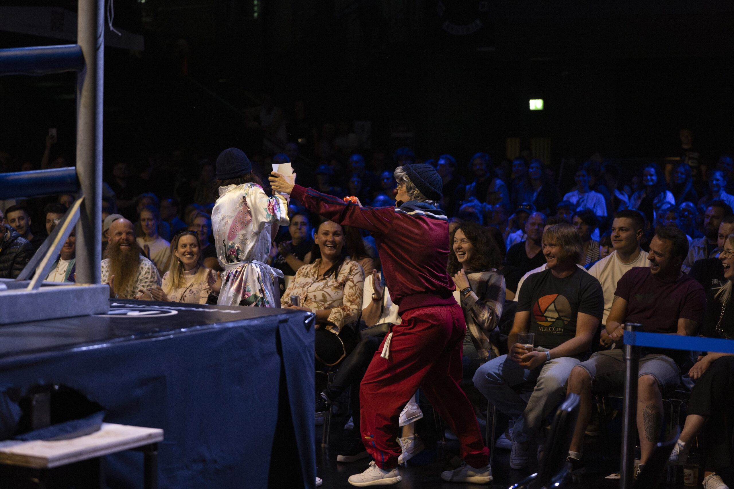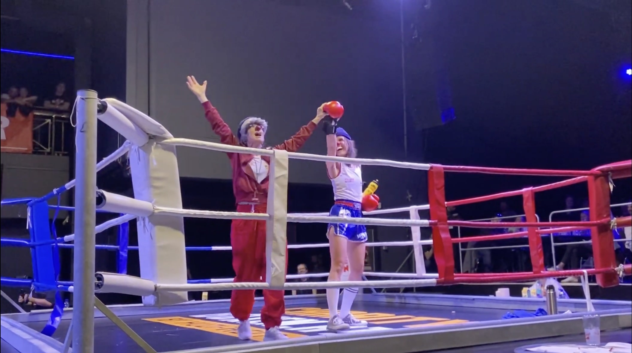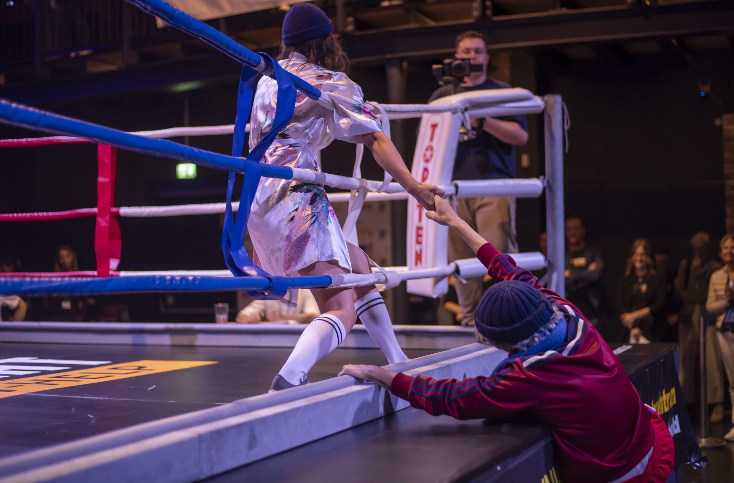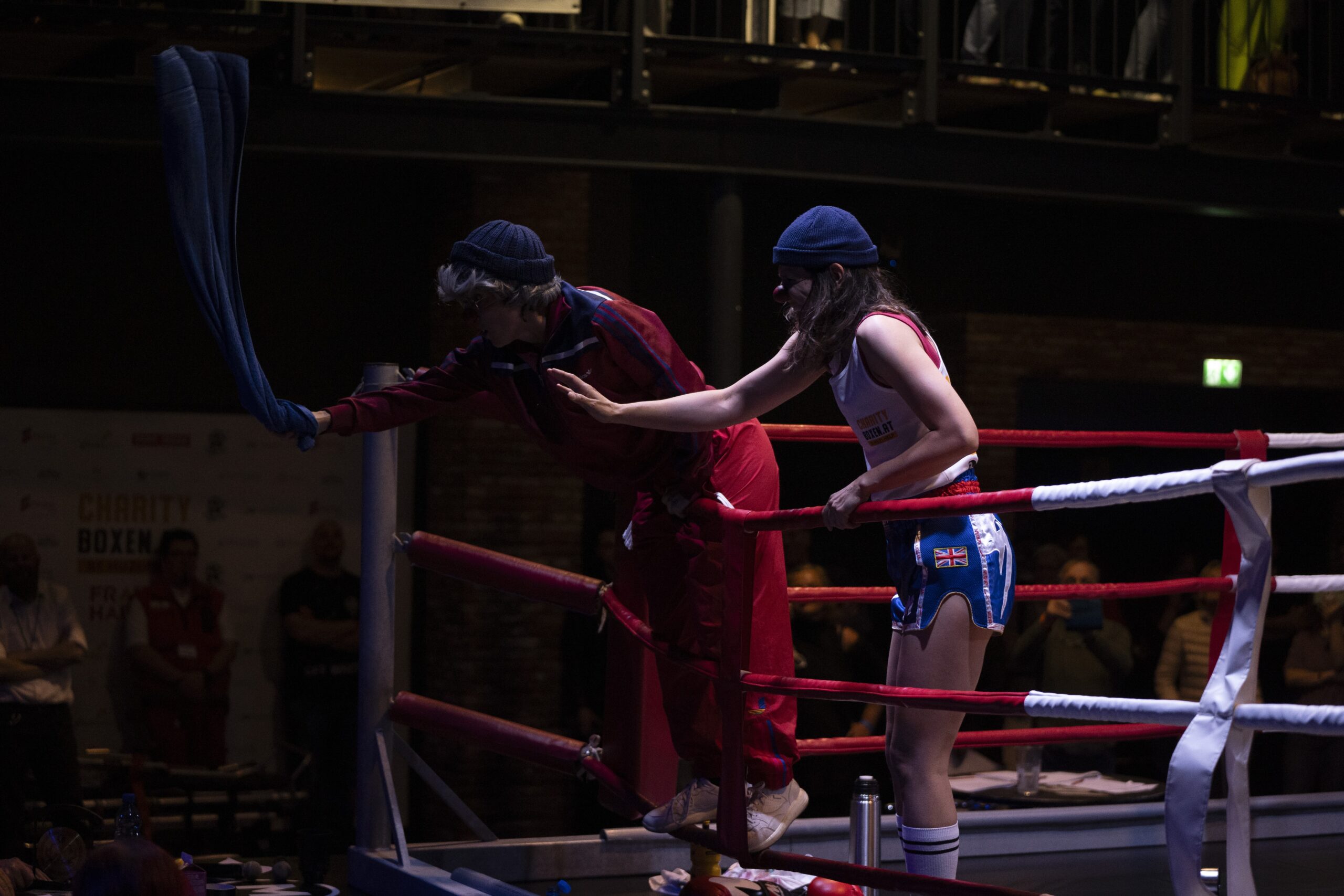 Ein Boxkampf der besonderen Art: Ricky mit Trainer*in Mickey, zu gunsten der Tiroler Frauenhäuser. 04.02.2024 Music Hall Innsbruck